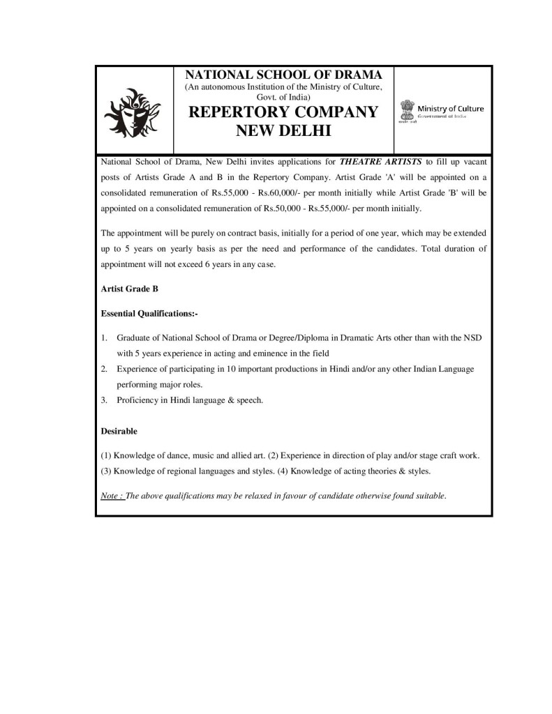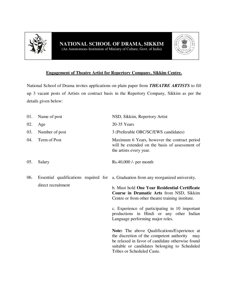 Engagement of Theatre Artist…