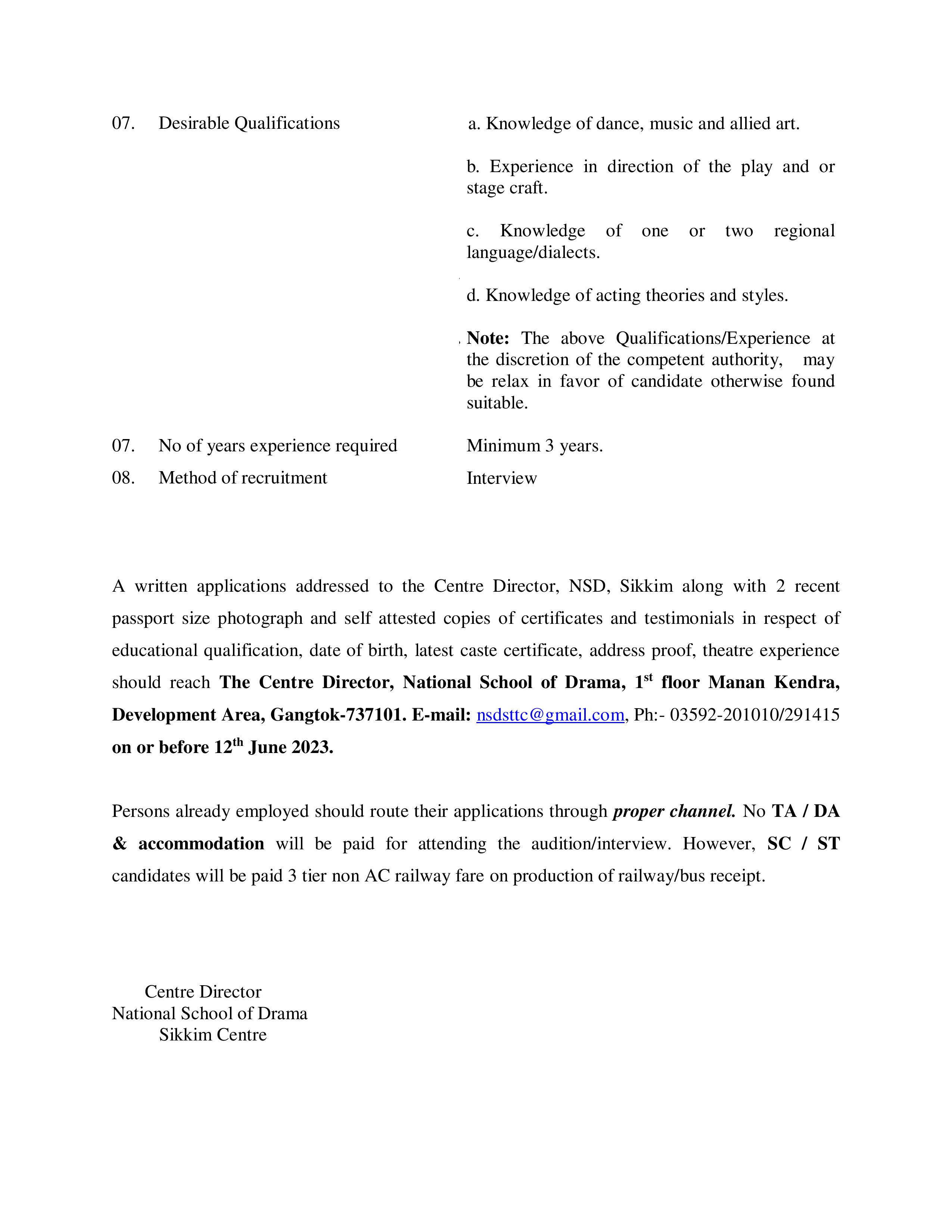 National School of Drama Bahawalpur House, Bhagwandas Road, New Delhi - 110 001 Tel - 011-23389402