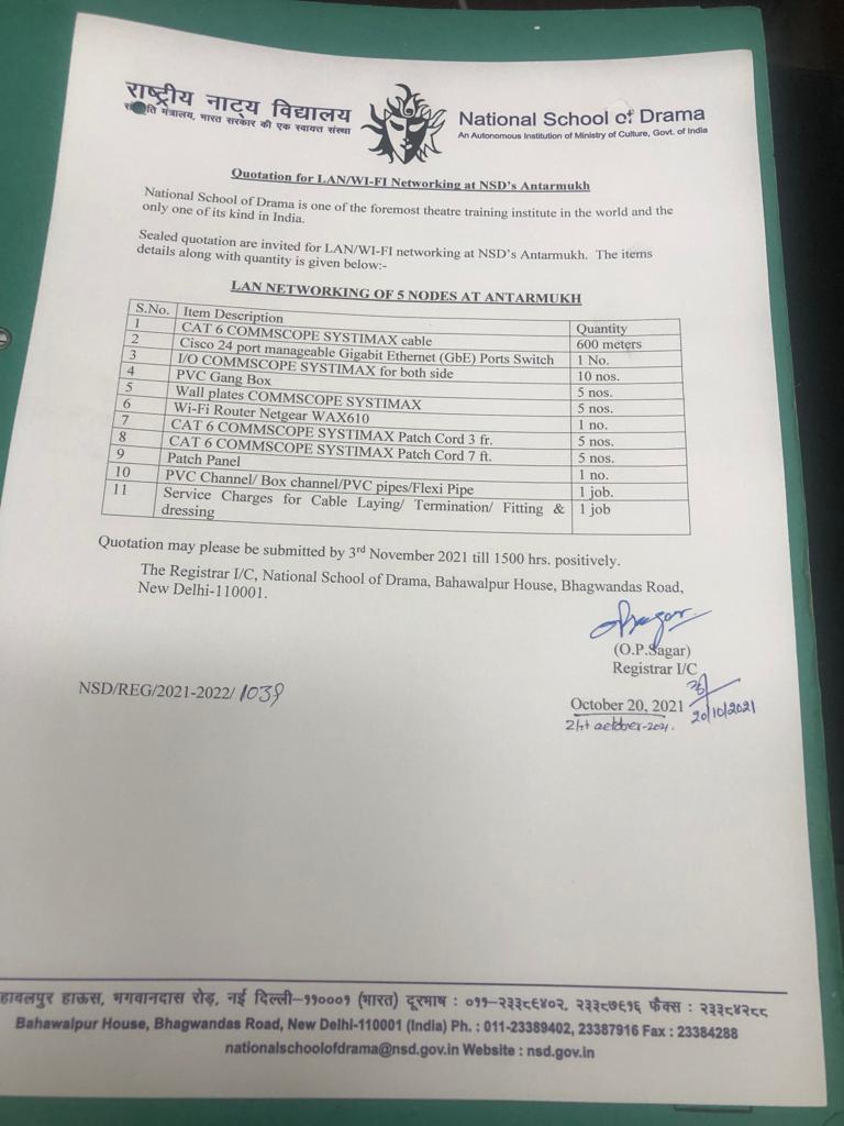 National School of Drama Bahawalpur House, Bhagwandas Road, New Delhi - 110 001 Tel - 011-23389402