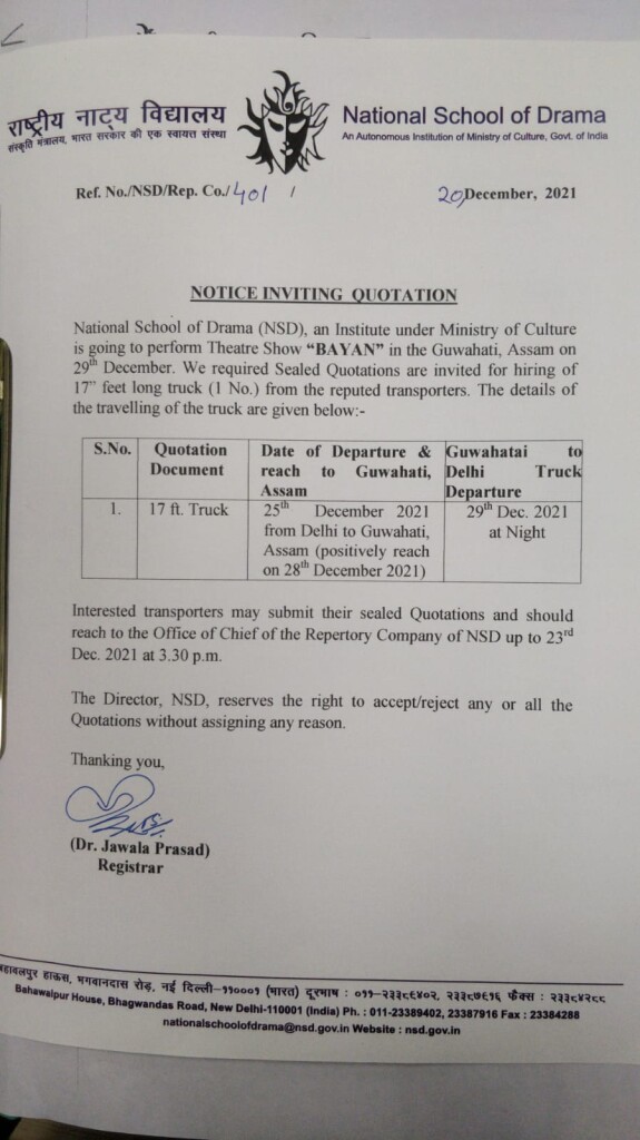 National School of Drama Bahawalpur House, Bhagwandas Road, New Delhi - 110 001 Tel - 011-23389402
