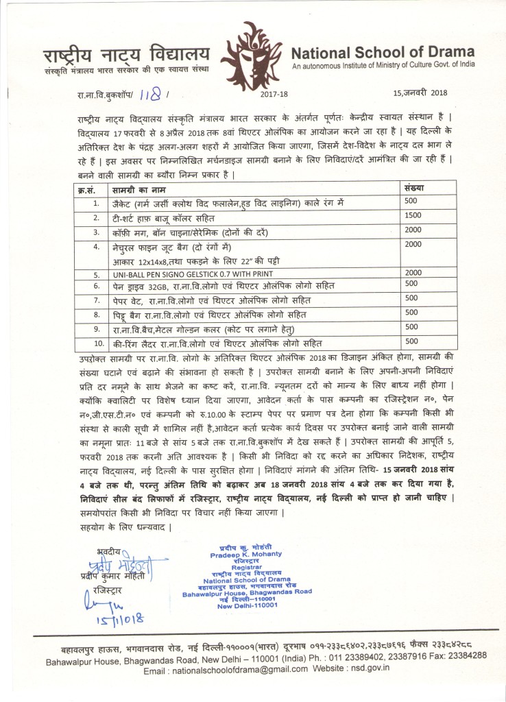 National School of Drama Bahawalpur House, Bhagwandas Road, New Delhi - 110 001 Tel - 011-23389402
