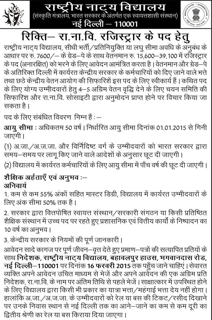 रिक्ति रजिस्ट्रार पद हेतु