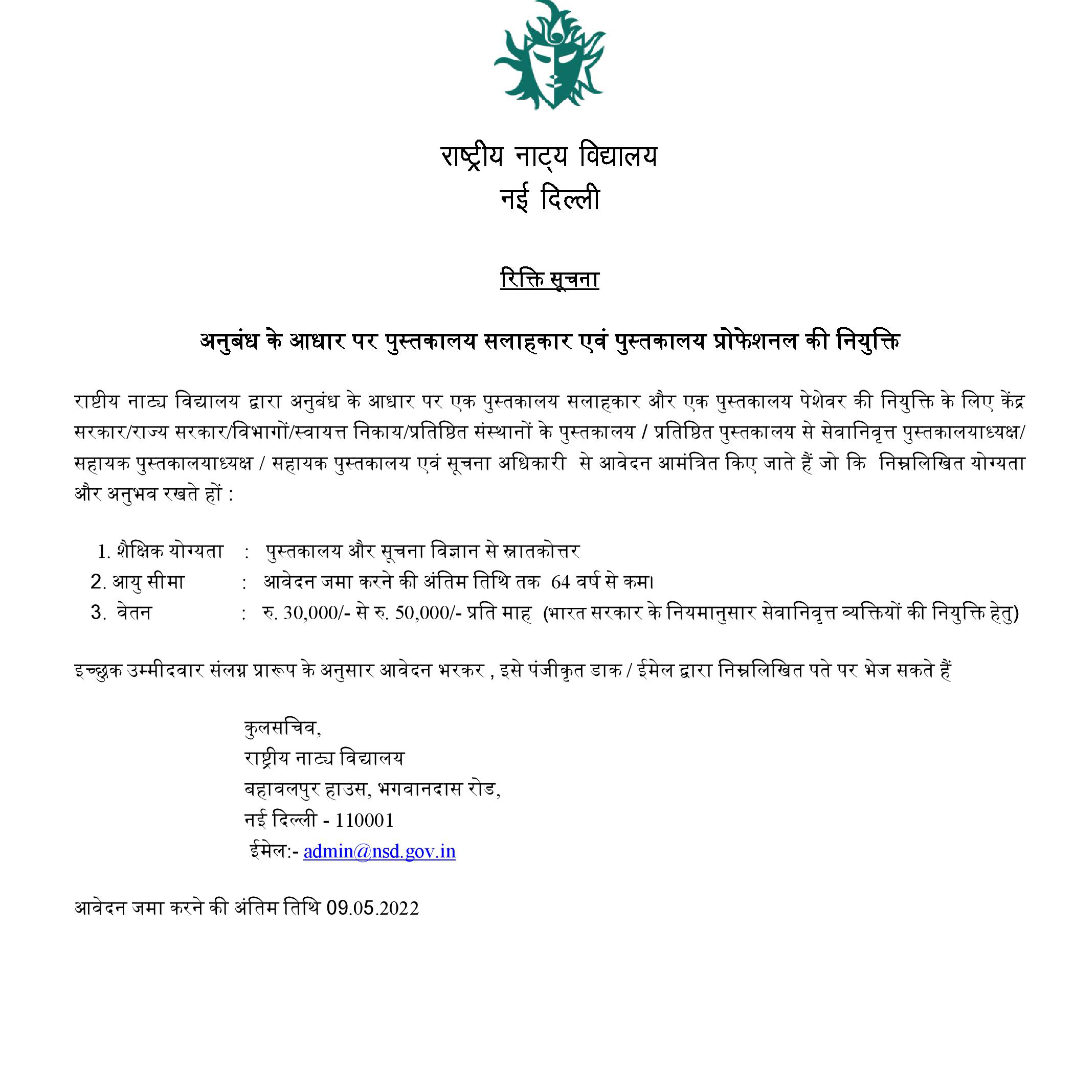 अनुबधं के आधार पर पुस्तकालय परामर्शदाता एवं पुस्तकालय प्रोफेशनल के नियुक्ति