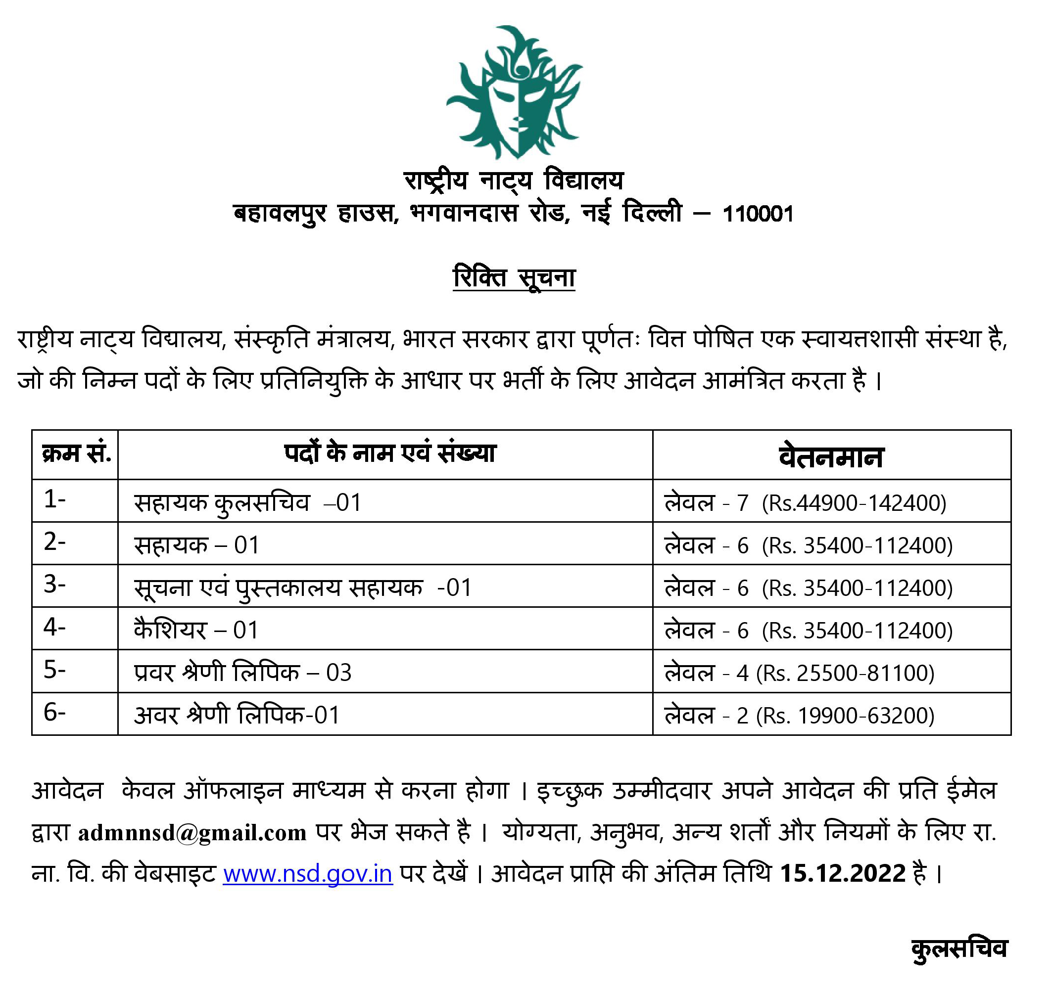 रिक्त सुचना – प्रतिकृति के आधार पर नियुक्ति